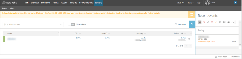 After some time, go to the New Relic tab, choose the servers menu and notice your server!