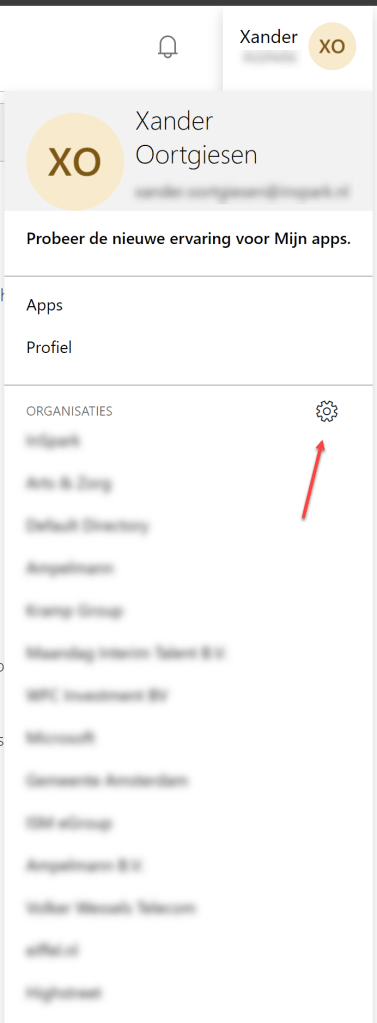 - Next to Organizations, select the settings icon (gear).