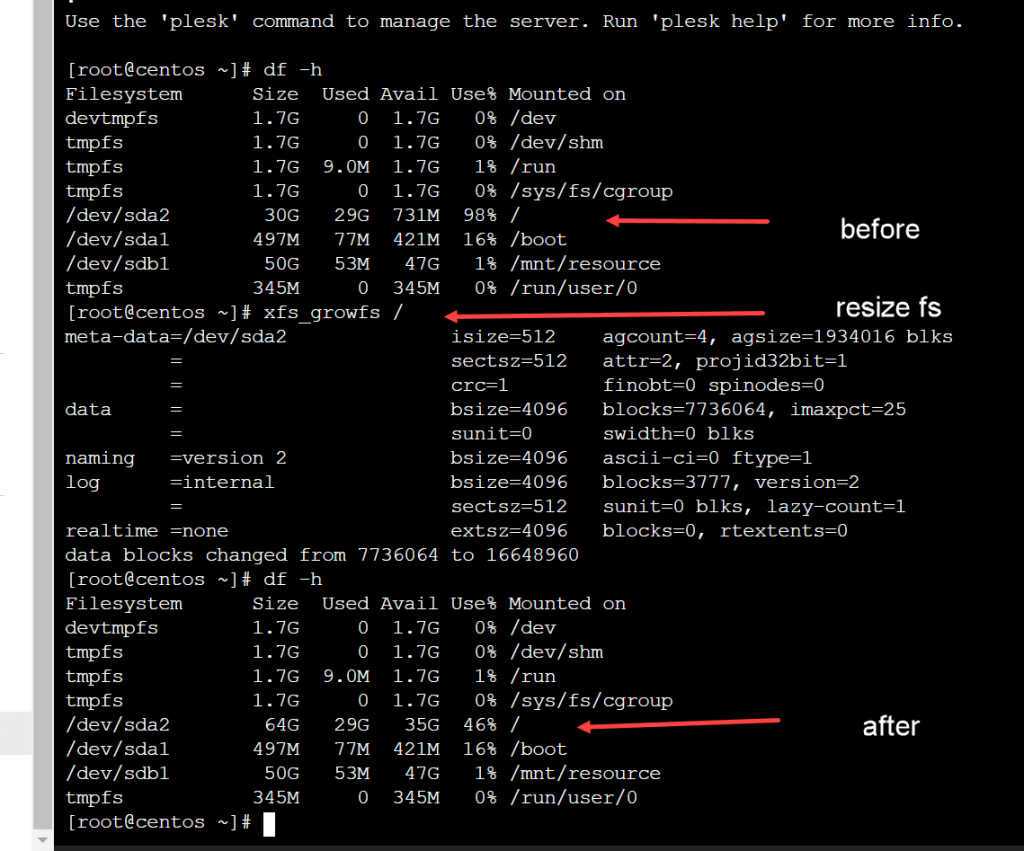In this simple blog post, I’m going to explain how easy it is to expand/resize your CentOS Linux VM disk. By default, an Azure Linux VM comes with a 30 GB boot disk. In this step, we’re going to expand this disk to 64 GB.